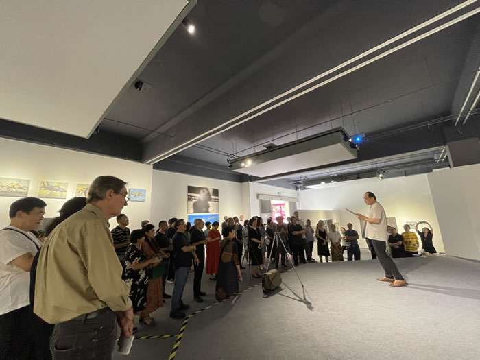 中国美术家协会副主席李翔在开幕式上发表了激情洋溢的致辞:“首先,我为两位艺术家的友谊而感动——二人二十年如一日,共同写生、创作、交流、办展,这样的跨国友谊令人敬佩。从个人缩影展望国际关系——国与国之间谈军事、历史、经济难以避免一些冲突,但艺术是和平的催化剂,国家之间应该大量发挥艺术交流和文化互鉴的作用,共同和谐发展。其次,我感动于他们的艺术创作。霍华德惯用拓印的方式进行创作,而这不禁让人联想到中国书法艺术的传播,所以他的创作文脉始终与中国文化有着天然的亲切感和契合之处。邢俊勤是创新的排头兵,他不仅在全军美展中屡次获得大奖,更时刻关注时代脉搏,将个人思考注入艺术创作,深刻了作品的内在价值。最后,我感动于霍华德和邢俊勤执着的艺术精神。虽身处两国,但他们无惧空间的挑战,排除万难持续举办联展,在这一过程中彼此鞭策、不断并肩同行,保持着跨国的友谊和学术的共进,怎能不让人感动!”